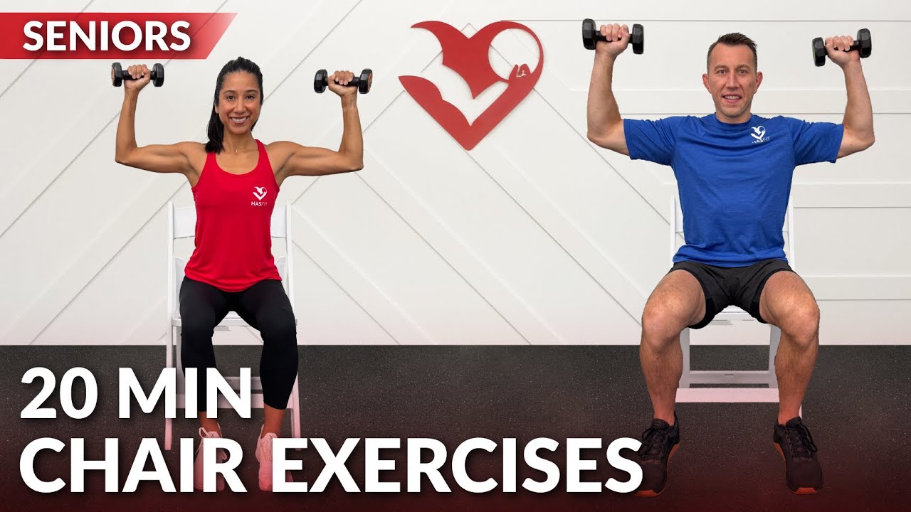 Instructions for 20 Min Chair Exercises for Seniors Workout at Home Sitting Down- Seated Exercise for Weight Loss: https://hasfit.com/workouts/home/senior/20-min-chair-exercises-for-seniors-2/