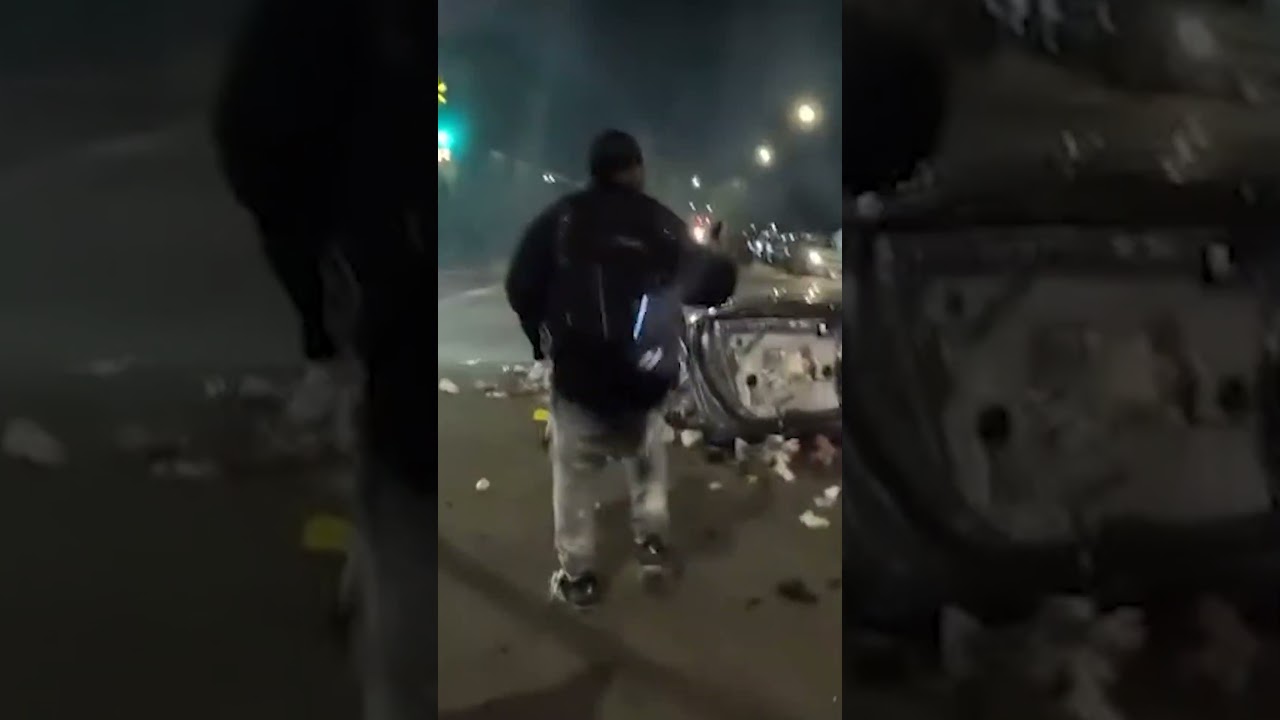 Watch: Ransacked Car Explodes During Chicago Street Takeover Chaos #shorts