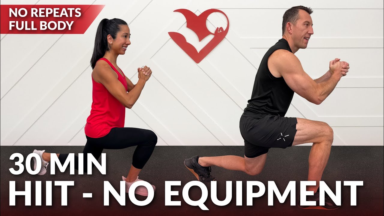 30 Min Cardio HIIT Workout for Fat Loss - No Repeat Bodyweight Workout No Equipment without Weights