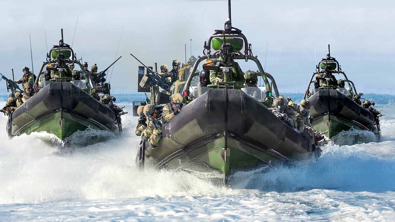 US & Dutch Marines Riding Super Fast Combat Boats During Patrol