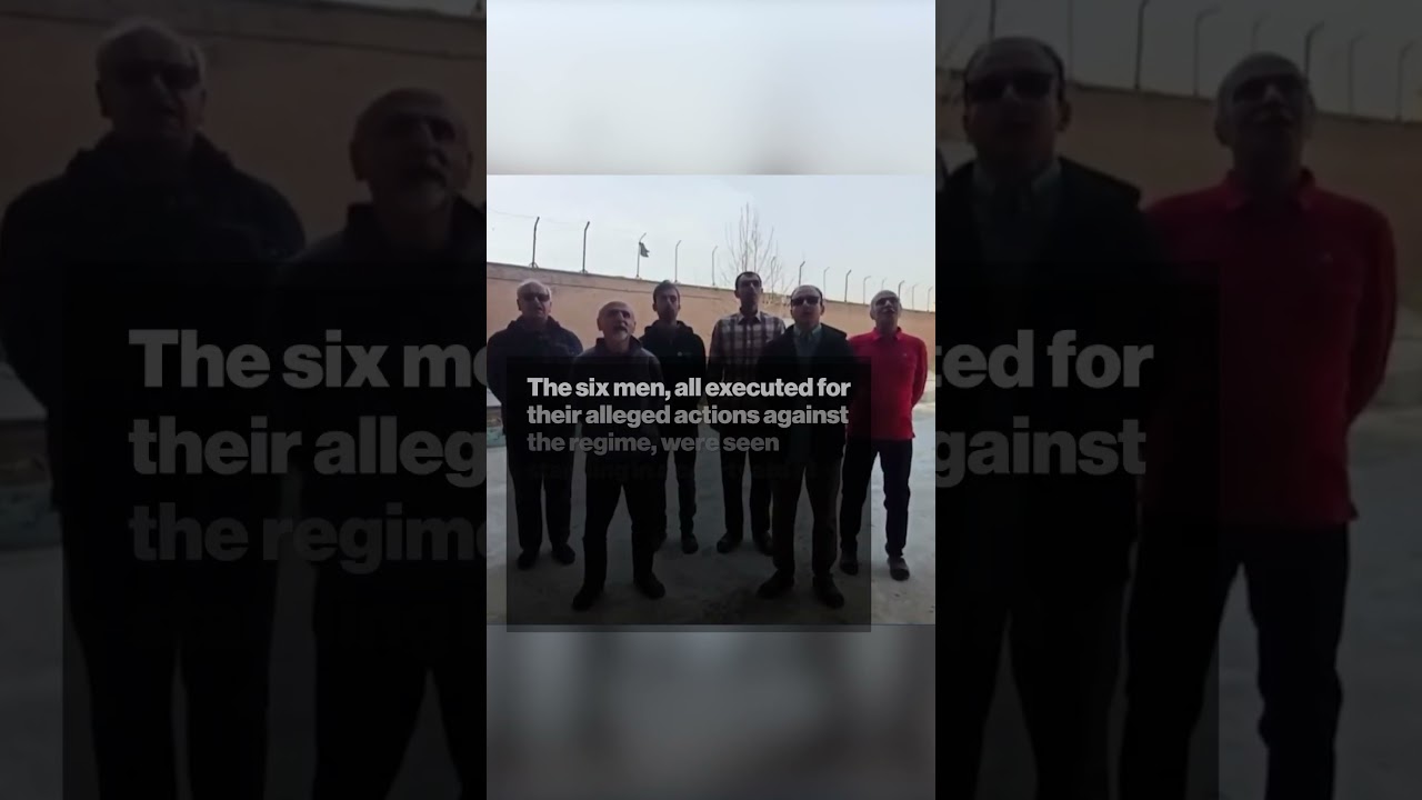The six men, all executed for their alleged actions against the regime, were seen standing in a courtyard at the notorious Ghezel Hesar prison as they made their final stand with a song of resistance.
